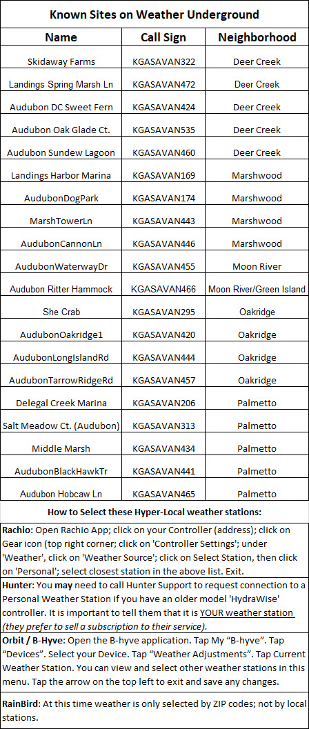 Your smart irrigation controller is able to take into account precipitation in the last few days at your location, as well as forecast precipitation for your local area to decide whether to modify or skip a scheduled irrigation session. Here on Skidaway Island we frequently have precipitation events that are highly localized. We even sometimes have an inch of rain at one location and no rain at all in another location not far away. For this reason, it’s important to link your smart irrigation controller to a reliable weather station that is close to your home.